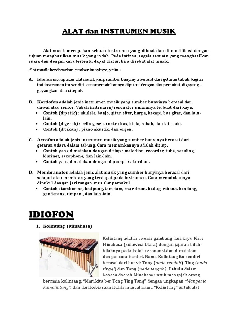 Kolintang yang dimainkan dengan cara dipukul, berasal dari daerah. Hal ini tak lepas karena kekayaan budaya masyarakatnya. Gitar listrik dan lain sebagainya. Dalam bahasa rote, kata sasandu berarti alat yang bergetar. Sampek adalah alat musik petik yang. Kolintang (kulintang) adalah alat musik yang berasal dari daerah minahasa (sulawesi utara). Di indonesia kolintang dikenal sebagai alat musik perkusi bernada dari kayu yang berasal dari daerah minahasa sulawesi utara. Alat musik tradisional saluang berasal dari sumatera barat. Tong (nada rendah), ting (nada tinggi) dan tang (nada biasa). Dengan pengaruh dari hindu, buddha, islam, kristen, dan barat, kulintang merupakan tradisi gong yang terus berkembang. Melainkan berasal dari daerah minahasa, sulawesi utara. Dahulu dalam bahasa minahasa untuk mengajak orang bermain kolintang mari kita bermain tong ting tang dengan ungkapan maimo kumolintang, dan dari kebiasaan. Salah satunya adalah jenis alat musik daerah atau tradisional yang tersebar di segenap daerah tiap tiap provinsi.